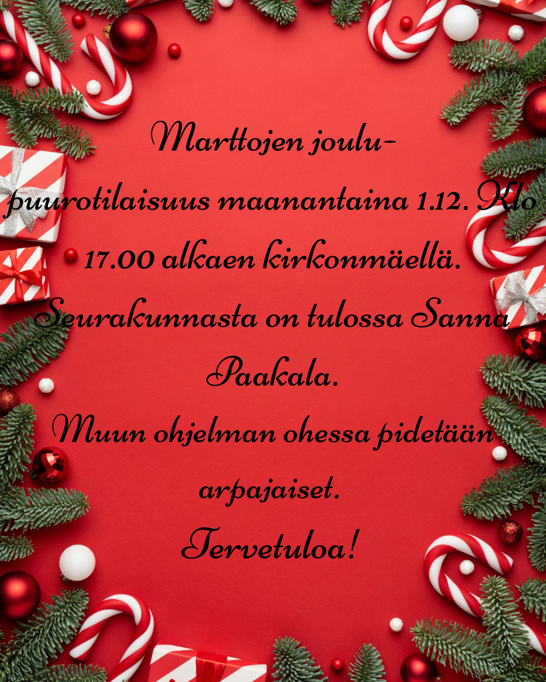 Tuohikotin marttojen joulupuurotilaisuus on 1.12. Klo 17.00 alkaen kirkonmäellä.